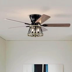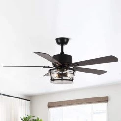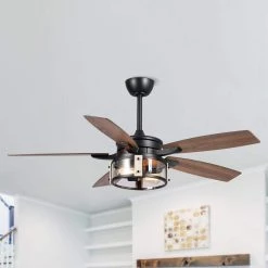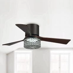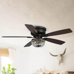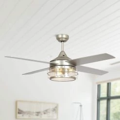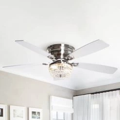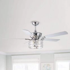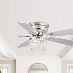 52 in. Chrome 5-Blade Reversible Motor Crystal Ceiling Fan with Remote and Light Kit by Parrot Uncle