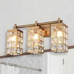 Modern Powder Room Bathroom Vanity Light, 20 in. 3-Light Gold Wall Sconce with Crystal Cuboid Shade by Parrot Uncle