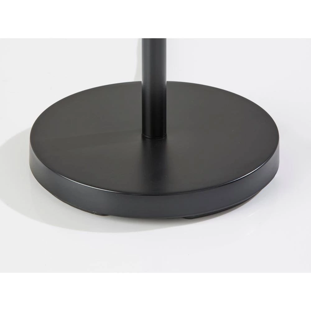 - Black metal finish is complemented by the dark grey and white textured fabric shade