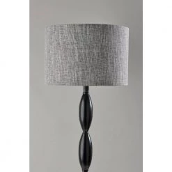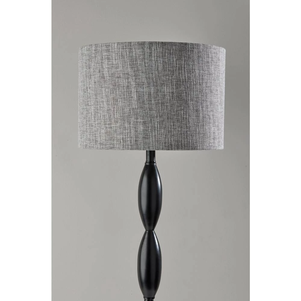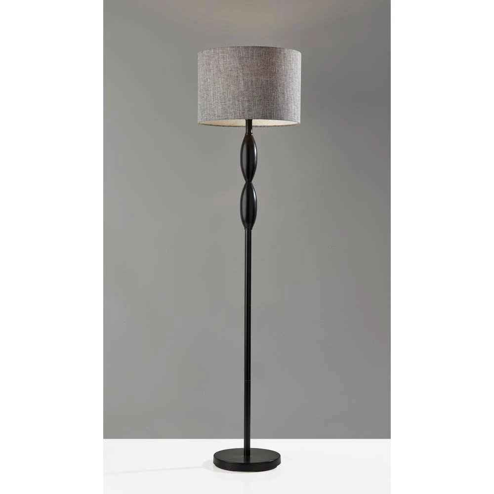 The classic candlestick shape is given a contemporary spin in the design of the Lance floor lamp. The 60.5 in. tall lamp features a black metal finish on the stem and matching round base, which is perfectly complemented by the dark grey and white textured shade for a distinctive, contemporary look. The short drum shade is 10 in. H and 15 in. Dai and softly distills light from a 100-Watt bulb (not included). Operated by a rotary socket switch to easily turn it on or off, the Lance floor lamp also includes a 6 ft. black cord. This lamp is also available in a brushed steel finish for a lighter look.