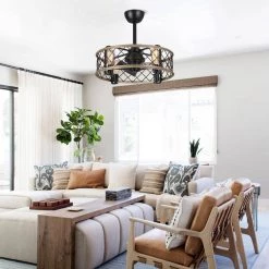 This 22.5 in. ceiling fan is a great option for keeping a room cool while delivering on-trend style for a small room. Featuring 3 ABS blades in whole wrapped by the outer metal caged grid frame, within 4 E26 base LED light bulbs allow this piece to keep your space bright as well as cool. Total matte black finish on the fan body, the iron frame hangs surround the lamp shape in special design, it will be an art to your home.