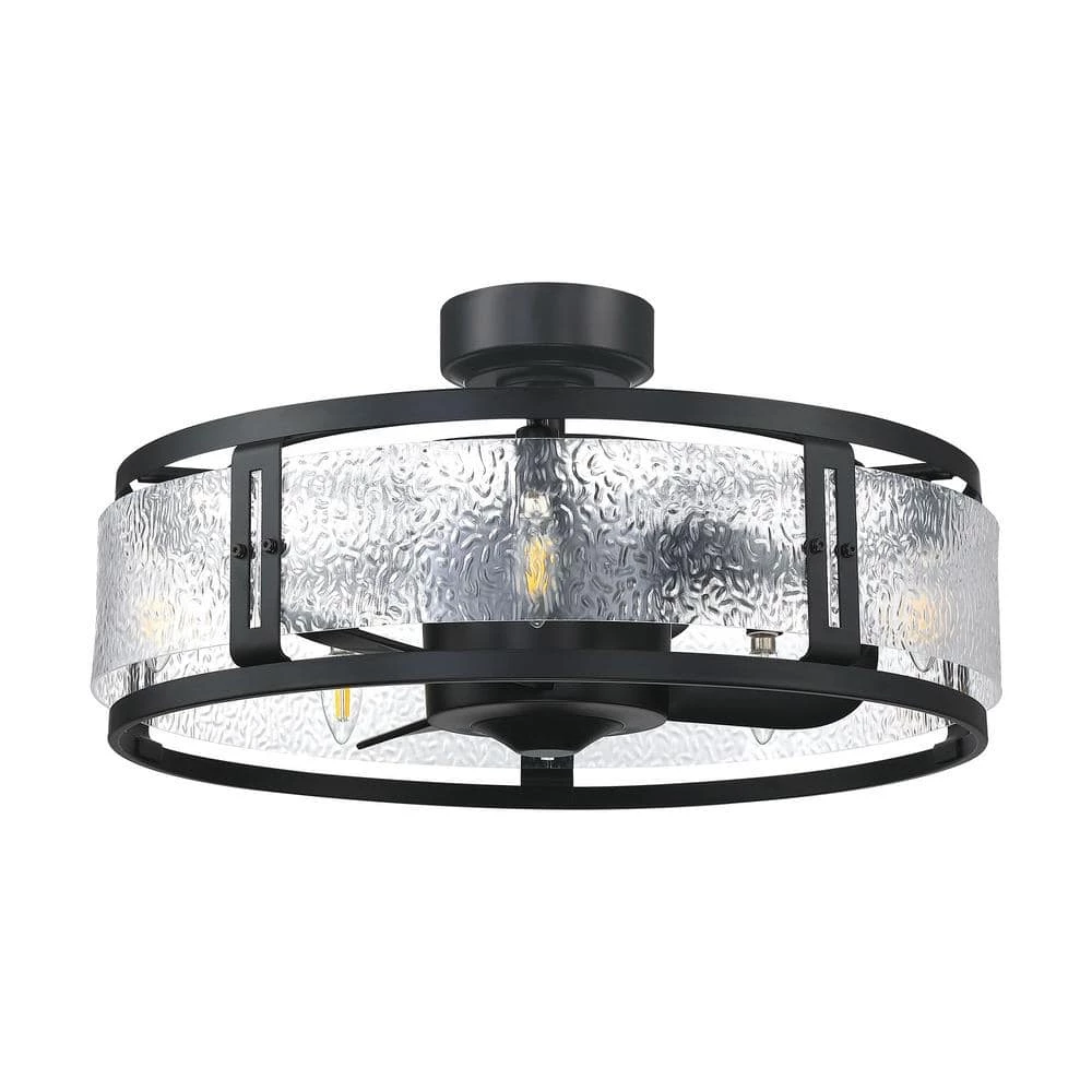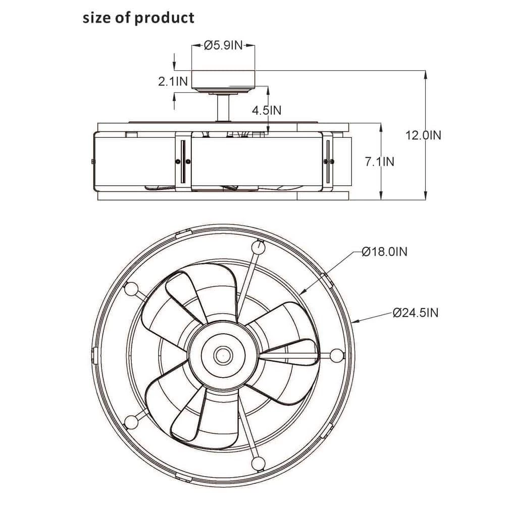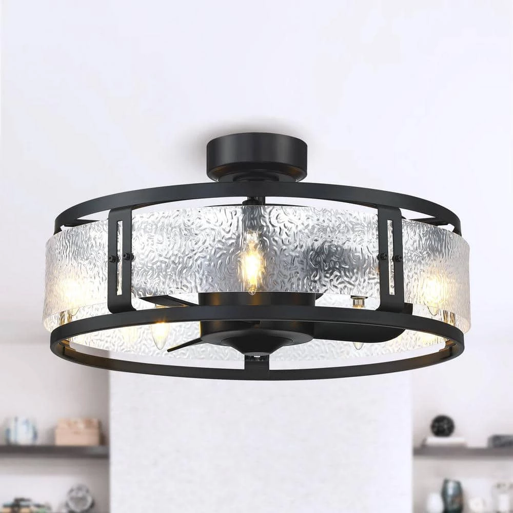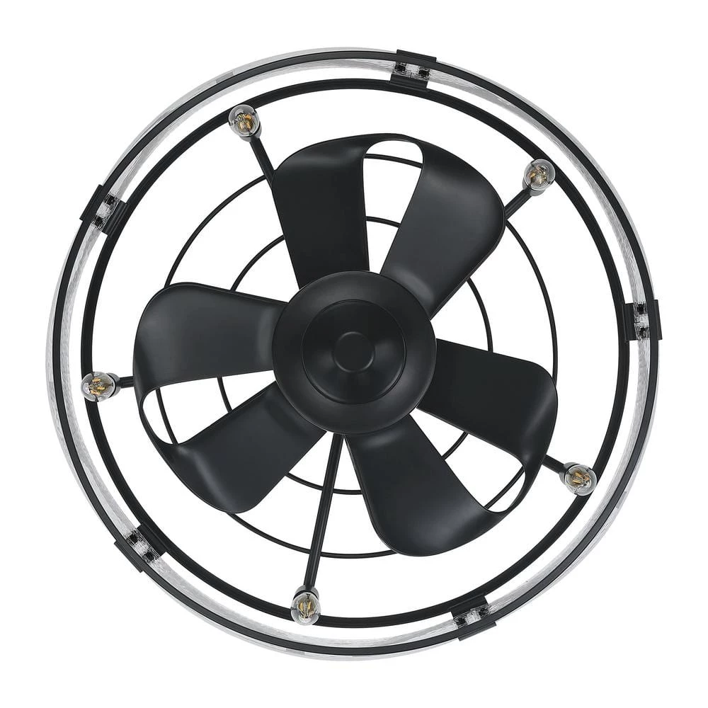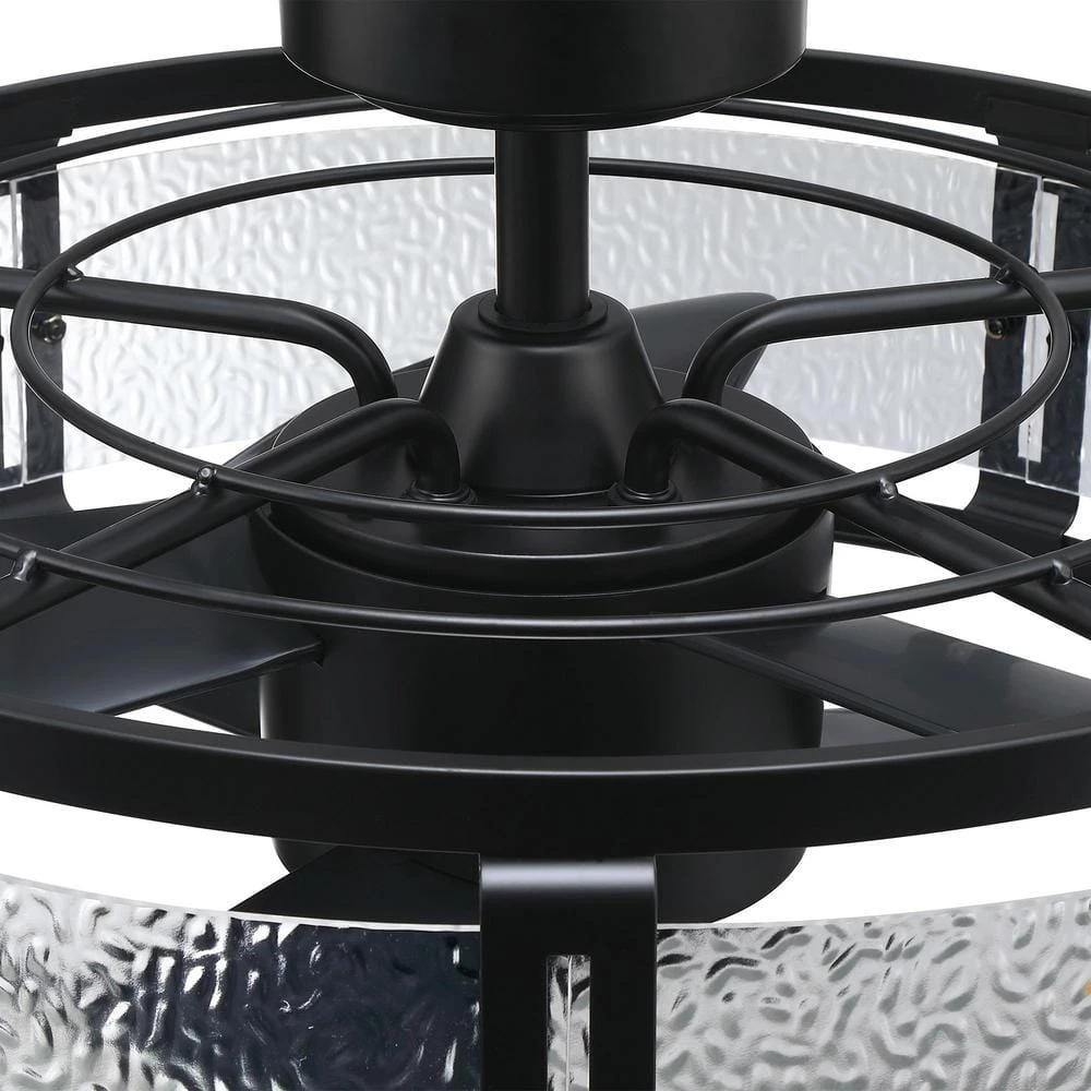 This 24.5-inch caged design ceiling fan, the outer metal shade uses a frosted circle ring piece for great design and structural integrity. The 5-lights provide ample illumination and 6-speed manual reversible functionality that lets you find the right cooling comfort. Comes included remote control for additional convenience to set the light and fan.