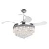 This decorative and functional chandelier ceiling fan Fandelier 3 blades LED ceiling fan with light and remote. Reversible blades. 6 fan speed gives off a great airflow, built-in 4000 Kelvin LED light gives off a bright light, timing function, allows you are able to choose the working time. With its delicate hand-craft and glamorous appearance, this black 3 blades LED ceiling fan with remote is surely a statement piece for your kitchen, dining room, living room, bedroom or foyer.