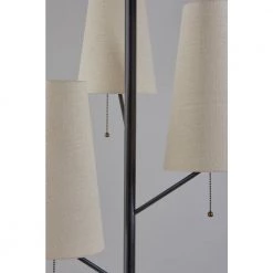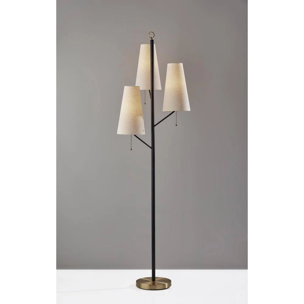 Brighten your room with a modern, industrial flair with the 71 Daniel floor lamp. The clean silhouette, large offset shades and combination of black and antique brass finishes create an understated yet stylish look. The lamp features a black metal body, with coordinating antique brass finish on the base and top. 3 arms present linear lines at offset heights leading to tall cream textured fabric shades. Each light is operated by a pull chain to easily turn the 40-Watt bulbs (not included) on or off independently of each other and the floor lamp features a black 5 ft. cord. Complete your interior design with the matching Daniel table lamp.