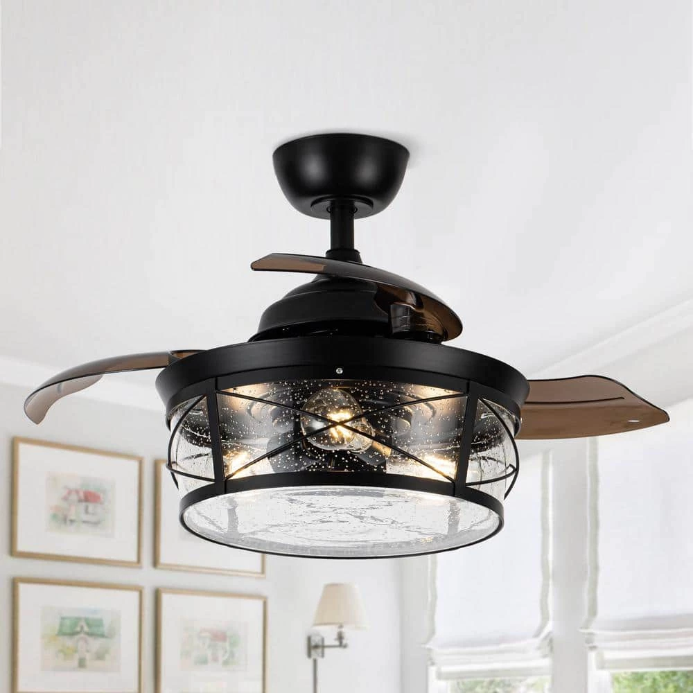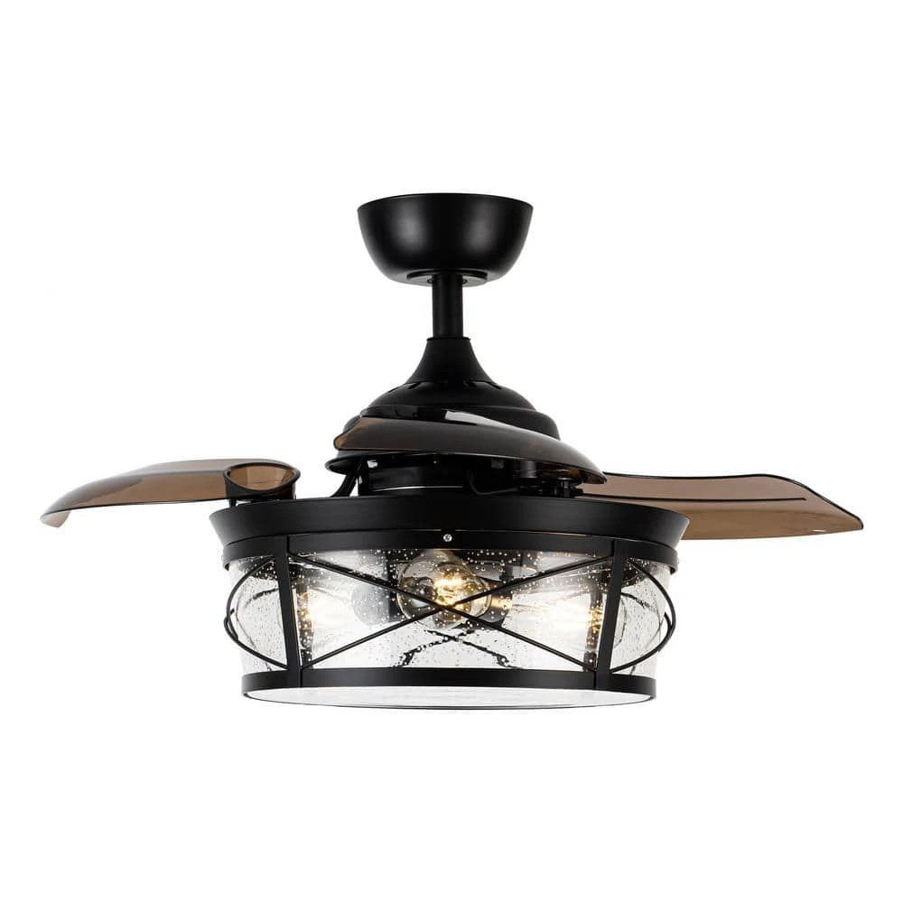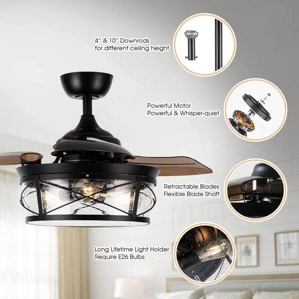 - 3-retractable acrylic ceiling fan blades, will stretch out and put inside automatically when turned on and off