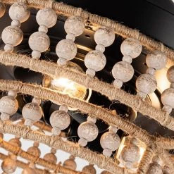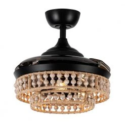 This 36 in. farmhouse 3 blade ceiling fan with remote control is multi-functional, it is a combination of an farmhouse beads chandelierlight kit and a retractable ceiling fan. When switched off, the intrusive fan blades automatically retract and conceal and visually the unit transforms into a slim light. Matte black finish on the body, 2-layers of rustic beaded lampshade with overlapping top and bottom, it will be an art to your home.