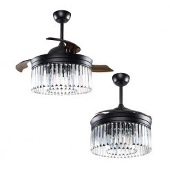 - Fan blades open and closed by remote, it is a better combination of a ceiling fan and a crystal chandelier
