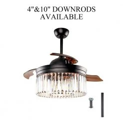 - 3-retractable acrylic crystal chandelier ceiling fan blades, diameter 42 in. when extended and 20-3/4 in. when closed, blades will stretch out and put inside automatically when turned on and off