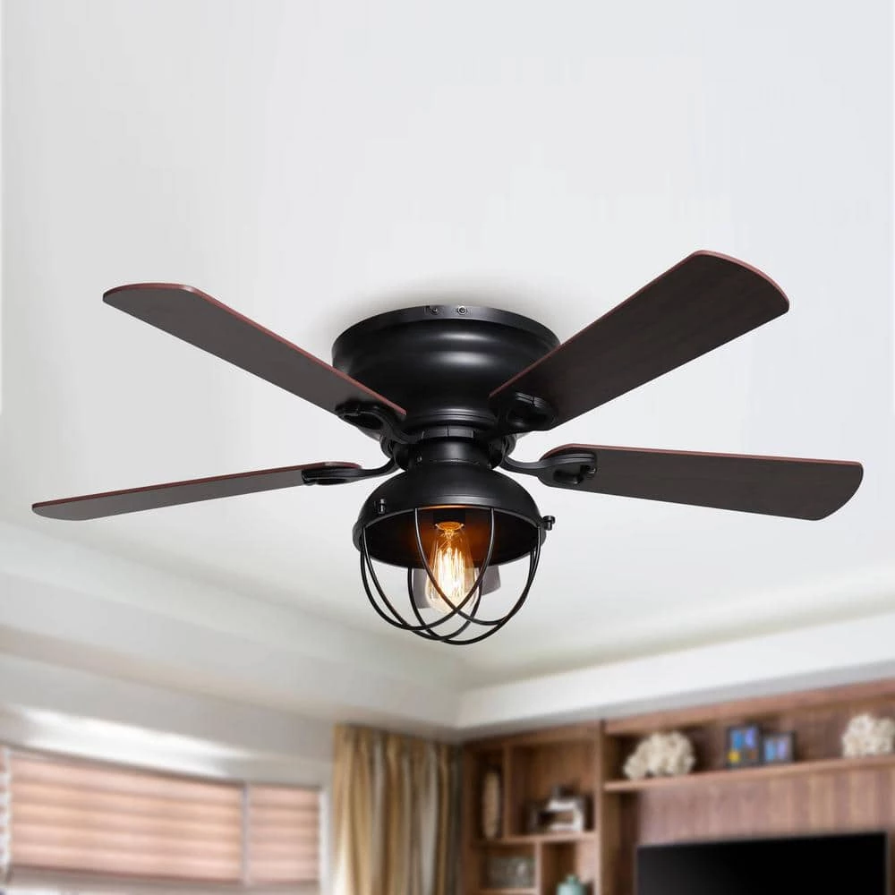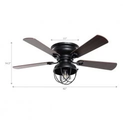 Through its casual style and charming appearance, this fan will compliment your decor without overpowering it. Clean line details work together throughout the fan body, wood blade light brown finishes and cage bowl light kit to create a coherent design with wide appeal. The 42 in. blades and low-profile motor housing make this fan a perfect fit for small rooms or low ceilings.