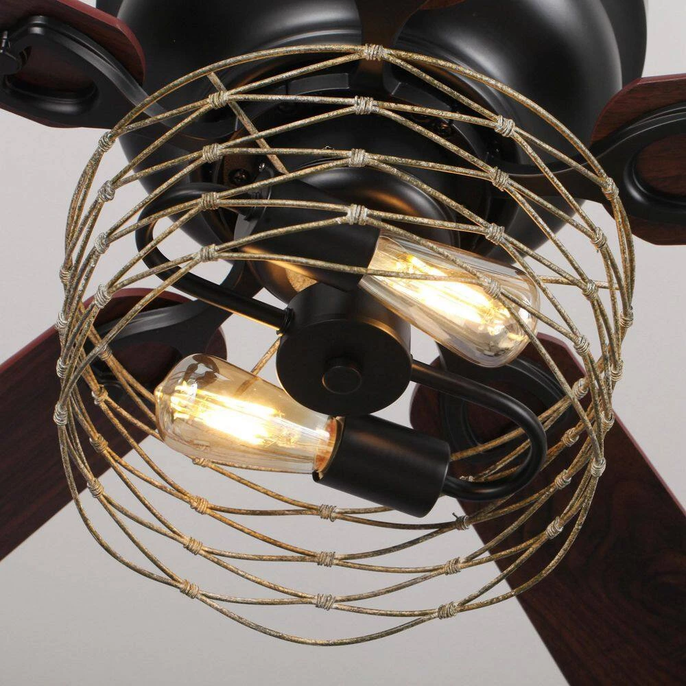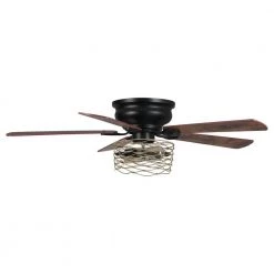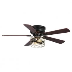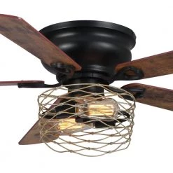 Allow your environment to radiate off peace and cool breezes with the help of our 48 in. indoor flush matte black ceiling fan chandelier. Our fixture features 2-lights, an open distressed iron caged lamp shade and 3 fan speeds that is bound to find your right level of cooling comfort. Decorative during the day and decoratively functional at night, get the best of both worlds with our 48 in. ceiling fan chandelier, ideal for bedroom, kitchen island, living room or dining room.