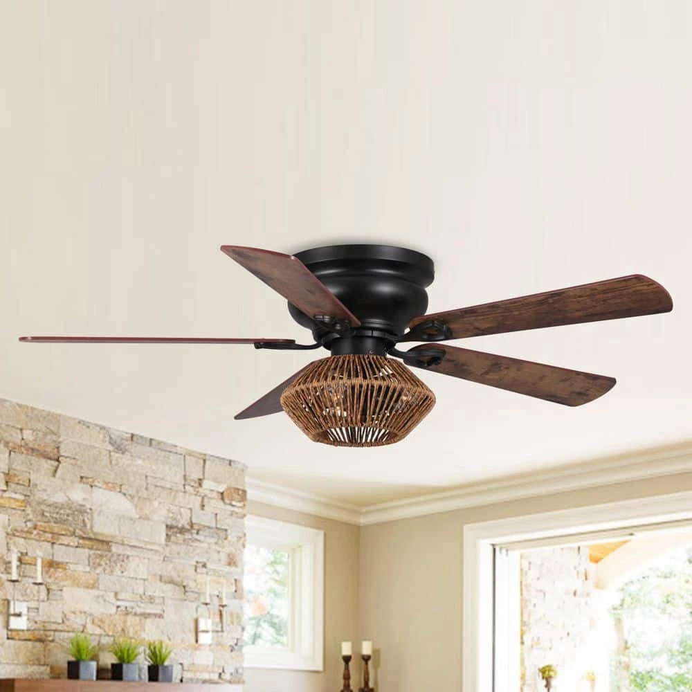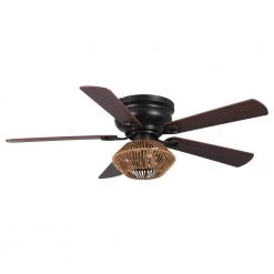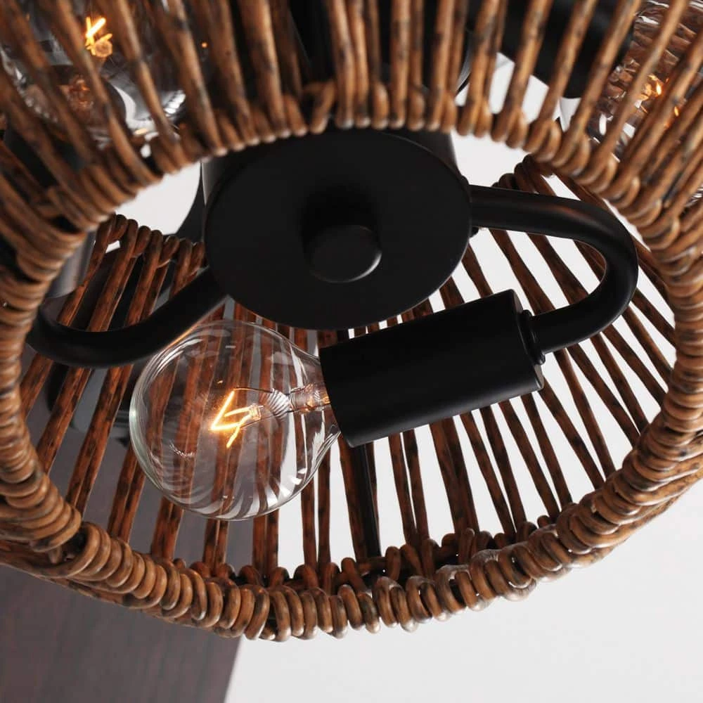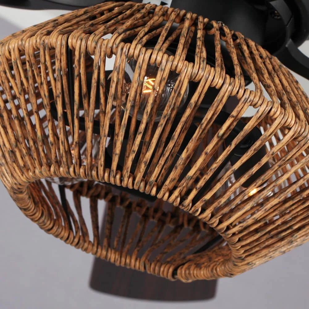 Allow your environment to radiate off peace and cool breezes with the help of our 48 in. matte black and wooden rattan ceiling fan chandelier. Our fixture features 3-lights, a woven rattan lamp shade and 3 fan speeds that is bound to find your right level of cooling comfort. Decorative during the day and decoratively functional at night, get the best of both worlds with our 48 in. Ceiling Fan Chandelier, ideal for bedroom, kitchen island, living room or dining room.