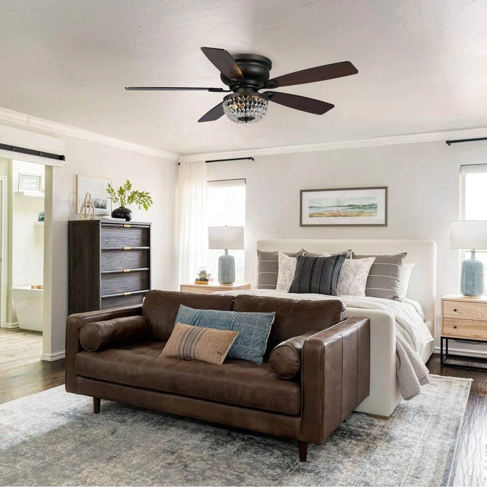 Keeping cool doesn’t mean you have to sacrifice style, this 48 in. industrial crystal ceiling fan brings glam all the way up to your ceiling. The coolest part isn’t its blades, but the crystal shade that surrounds 2-bulbs apiece for an eye-catching glow. With the chandelier fan, there are 5 dark walnut finish wood blades that feature a 3-speed AC motor, fully satisfying your daily lighting and cooling needs.
