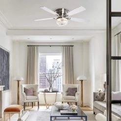 - 5-blade low-profile hugger ceiling fan with silver finish and nickel finish gives any indoor space a modern and contemporary look