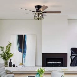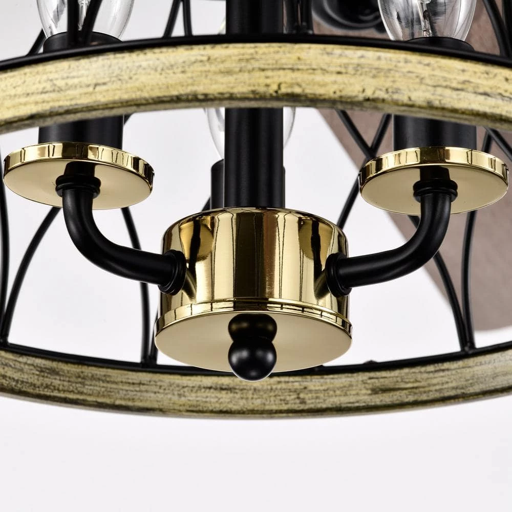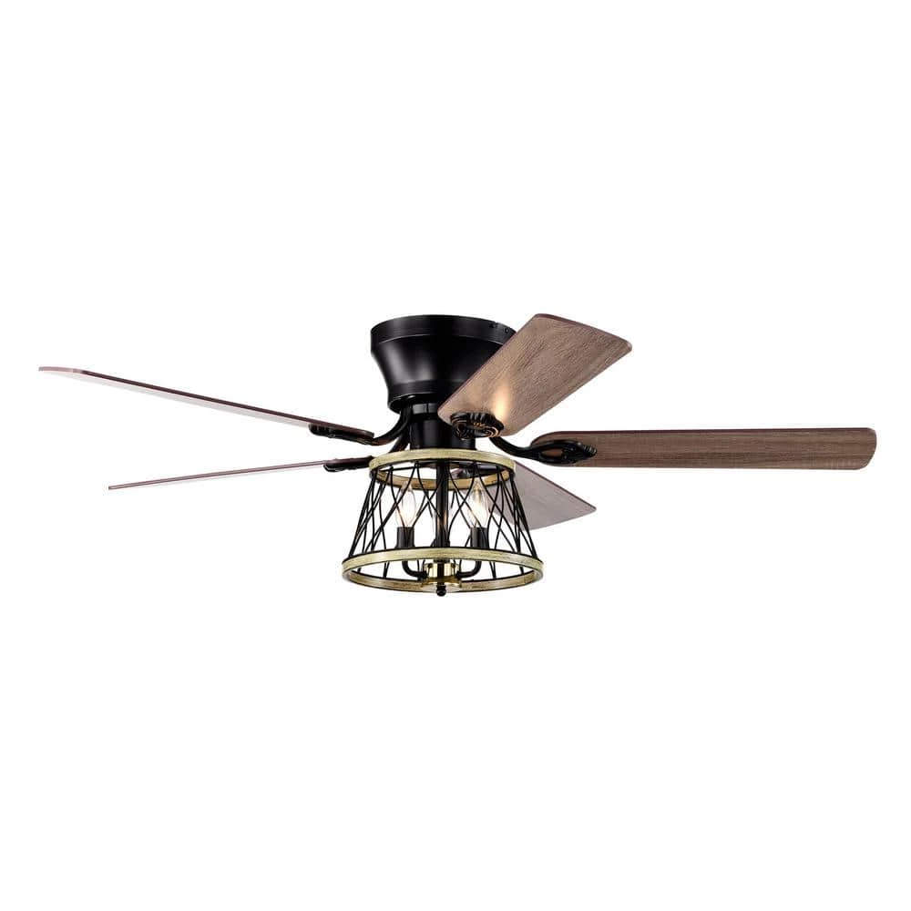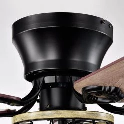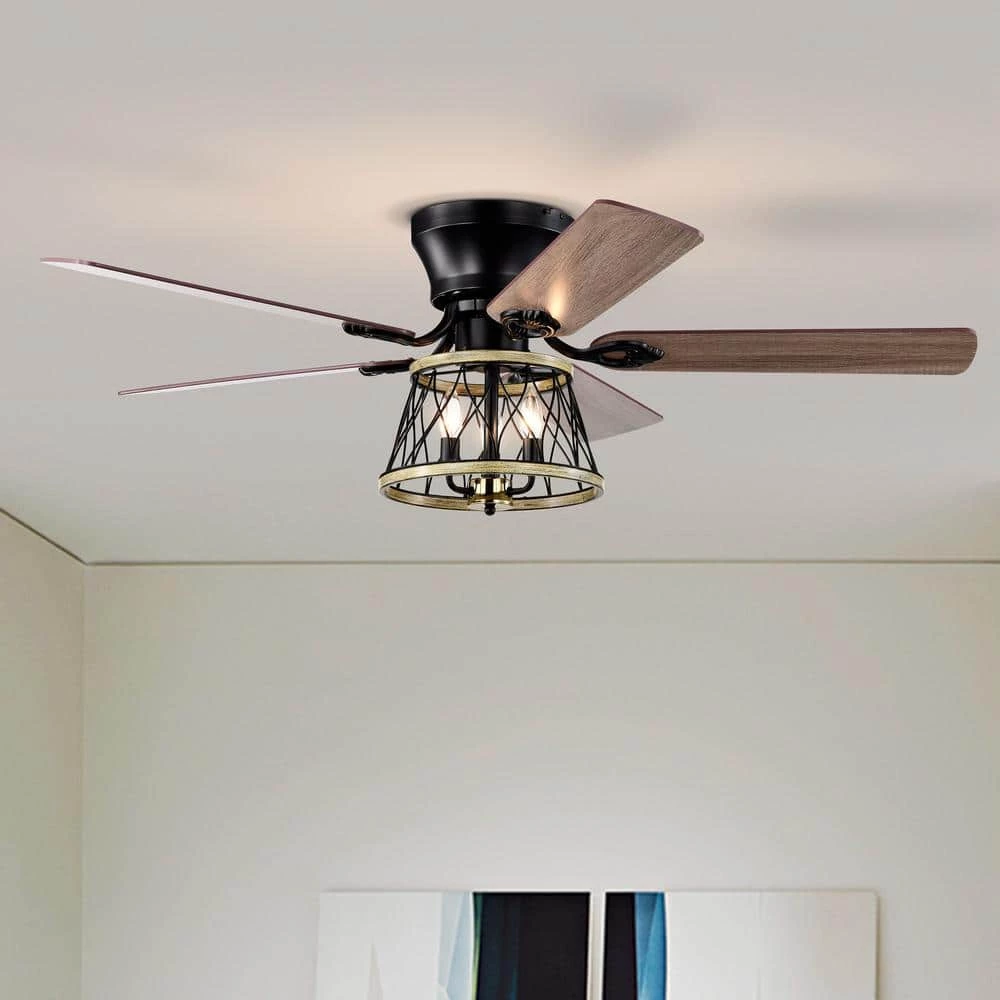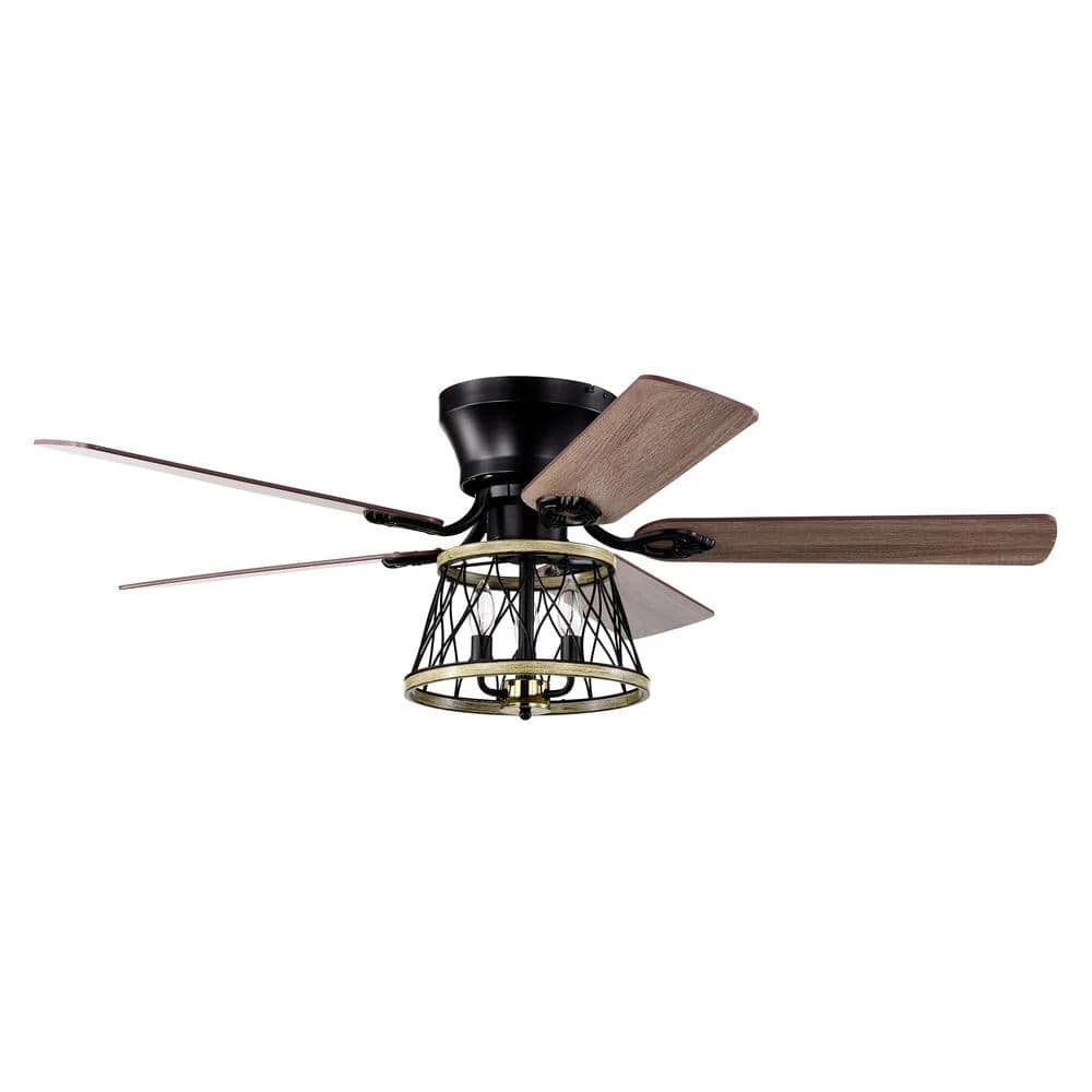 Give your living space a flair of grandeur with this hugger ceiling fan chandelier, the black metal shade and polished gold lamp base combines to fill your home with a upscale elegance rarely found in such a functional package. Features a 3-speed AC motor and 5 reversible plywood blades, shifting forward/reverse switch on fan body allows you to change fan’s direction seasonally.