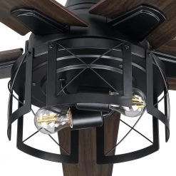 This 2 colors reversible ceiling fan is a great option for keeping a room cool while delivering on-trend style. Featuring 5 manufactured wood blades a metal base, this piece is a great option for larger rooms thanks to the 52 in. blade span. Below, 2 globe light bulbs allow this piece to keep your space bright as well as cool, while an openwork metal globe shade adds an industrial-inspired accent perfect for a modern house.