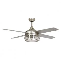 Brimming with a distinctive style, this visually intriguing 4-blade ceiling fan offers a breezy flair to any corner of your favorite aesthetic. This fan’s brushed nickel body is good for a modern or industrial room. Light and fan can work independently, no noisy. Required 3 maximum 40-Watt bulbs, E12 base, they recommend LED light which is energy-saving.
