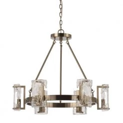 Distinguished and dazzling, this iron wagon wheel chandelier is sure to make for an arresting addition to home decor. The solid iron wheel is matched with crystal lamp shade for a positively regal look perfect for illuminating any area choose from multiple finish options to best fit your space. We provide 1-year limited warranty