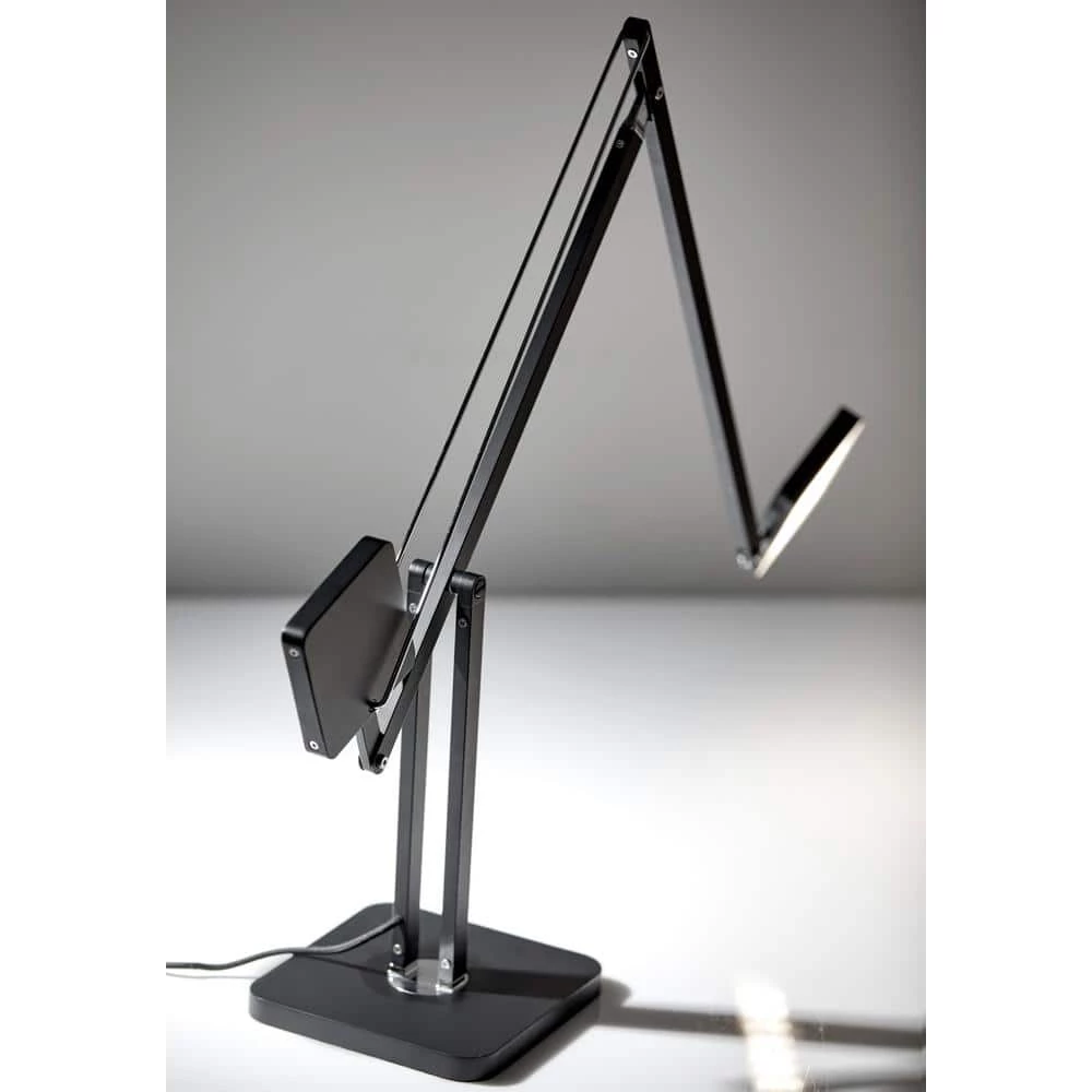 The perfect fluid arm movement has been discovered in the Cooper LED Desk Lamp. Two square shapes of the same size cooperate to create a fluid movement. One is dense and heavy to act as a counterweight, the other one is light and hollow to act as a lamp shade.