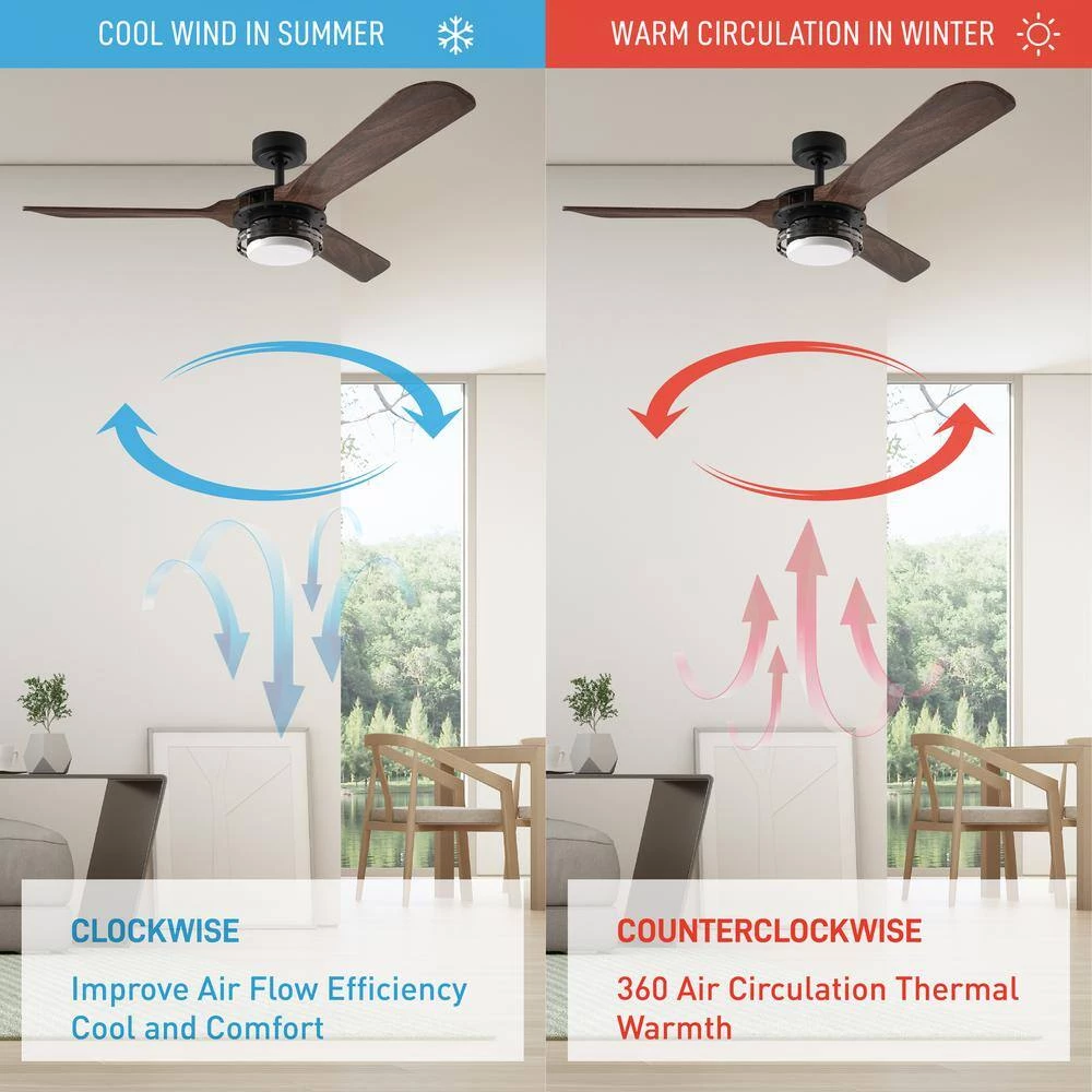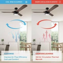 - Reversible control function allows you to switch the direction of the modern ceiling fan from downward airflow during the summer to upward during the cooler winters so as to reclaim and lose heat from the ceiling and to cut down on energy costs
