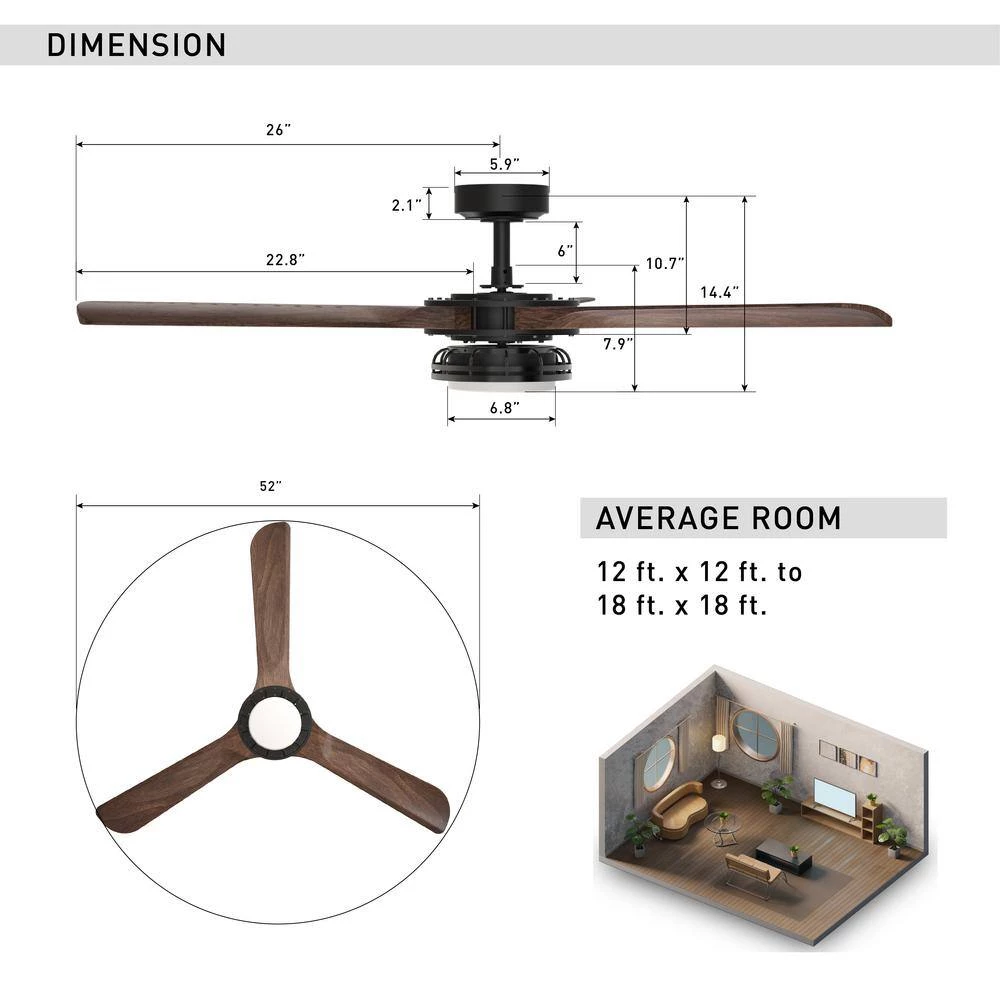 - All operations can be controlled by the remote control, including adjustment of the light color (3000K/4000k/5000K), light brightness dimmer, 6 wind speeds and supports timer (1-hour/3-hour/6-hours) sleep shutdown