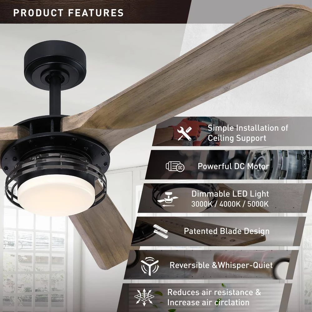 - No wobble on highest speed, reverse airflow feature can changed the direction of the fan from updraft mode in the summer to downdraft mode in the winter