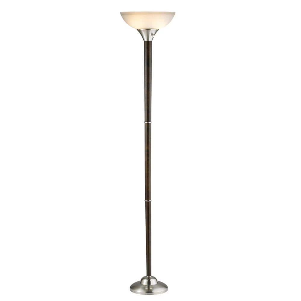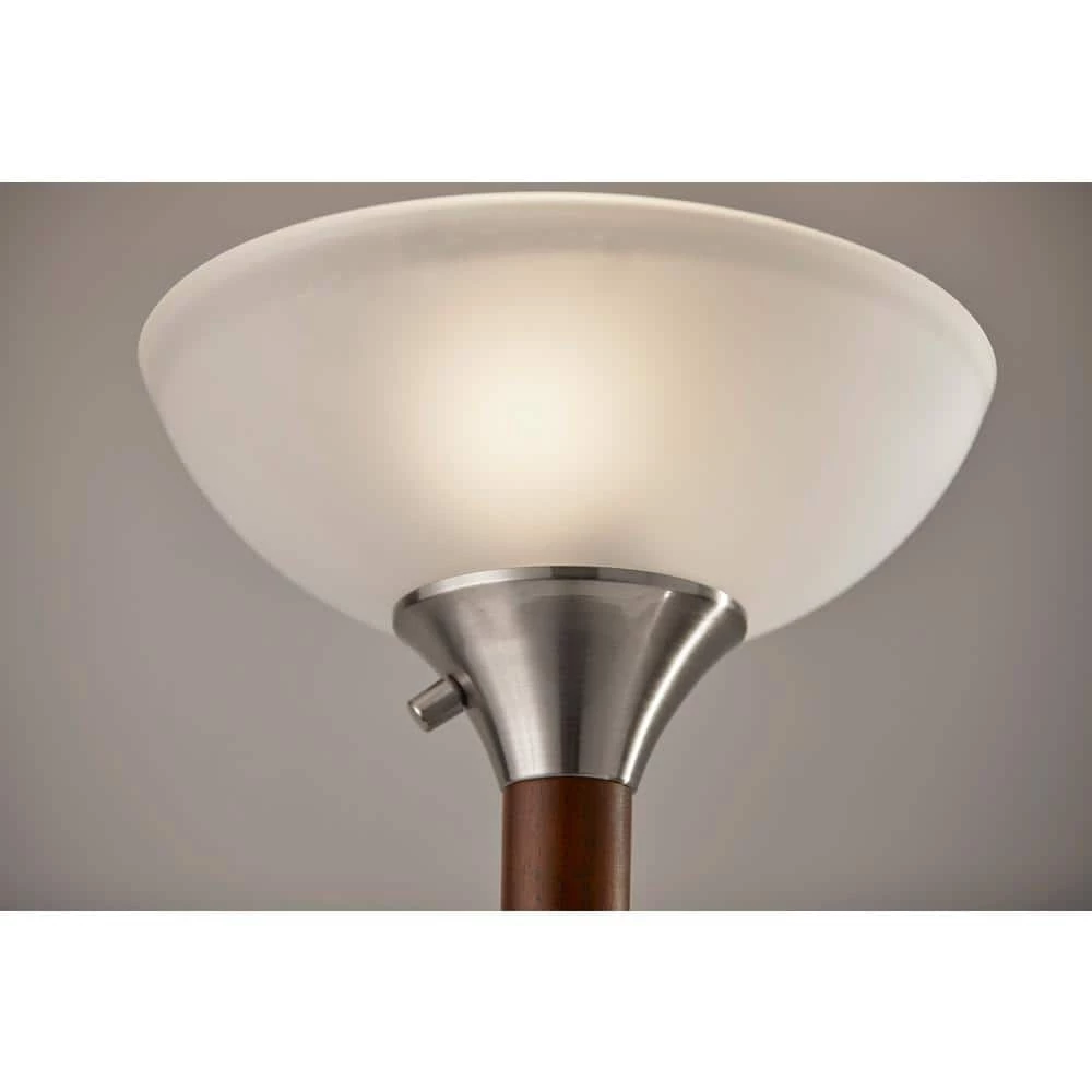 The Alta Floor Lamp has a tapered wood body separated by satin steel accents, topped with a frosted glass shade. Its High/low rotary socket switch controls the Adesso patented 300-Watt socket for superior light output, 71 in. H.