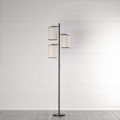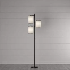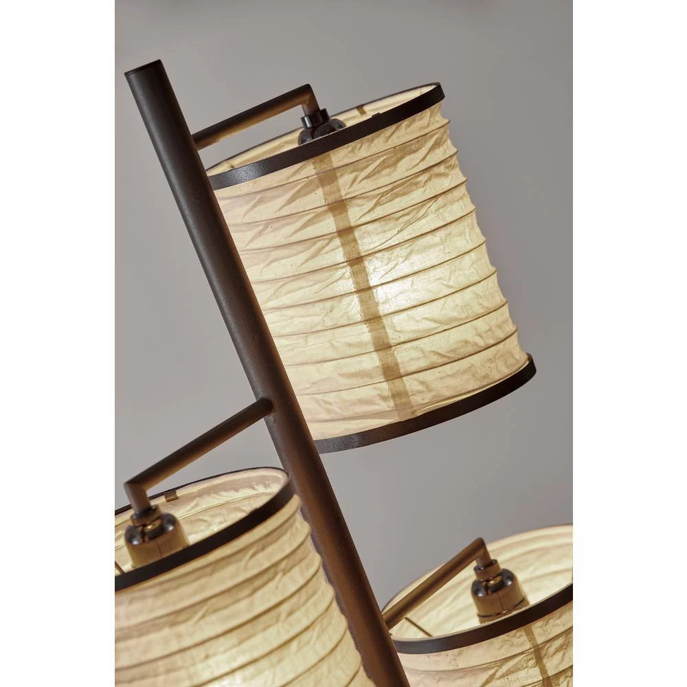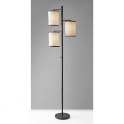 The Adesso Bellows 74 in. Floor Lamp features three cotton lanterns suspended from an antique bronze frame. This lamp brings an exotic feel to your space and provides a sleek, streamlined look. A 3-way rotary switch lets you adjust the light output.