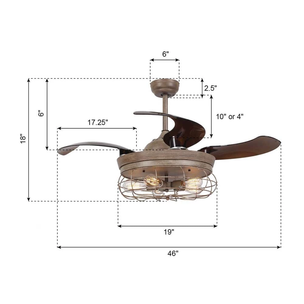 - Retractable blades: with 4-retractable acrylic ceiling fan blades, diameter 46 in. when extended and 20-3/4 when closed, blades will stretch out and put inside automatically when turned on and off