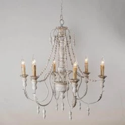 This wood chandelier is completely handmade with hundreds of procedures involved, unique and exquisite. Distressed gray column matching with rust metal arms create the chandeliers for dining rooms a sensation of French country, giving a luxury presence to your sweet home. Perfect for bedroom, dining room, living room, foyer or any other place.