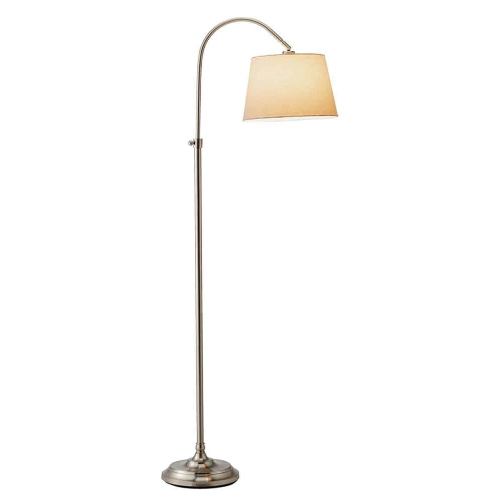 This transitional modified arc floor lamp is perfect for any living space in your home. With its telescoping body you can easily adjust the height from 55 to 62 in. A decorative accent ball locks the height into place. The shade adjusts to a 45° angle, letting you direct the light as needed. Easy to use on and off three-way rotary socket switch.