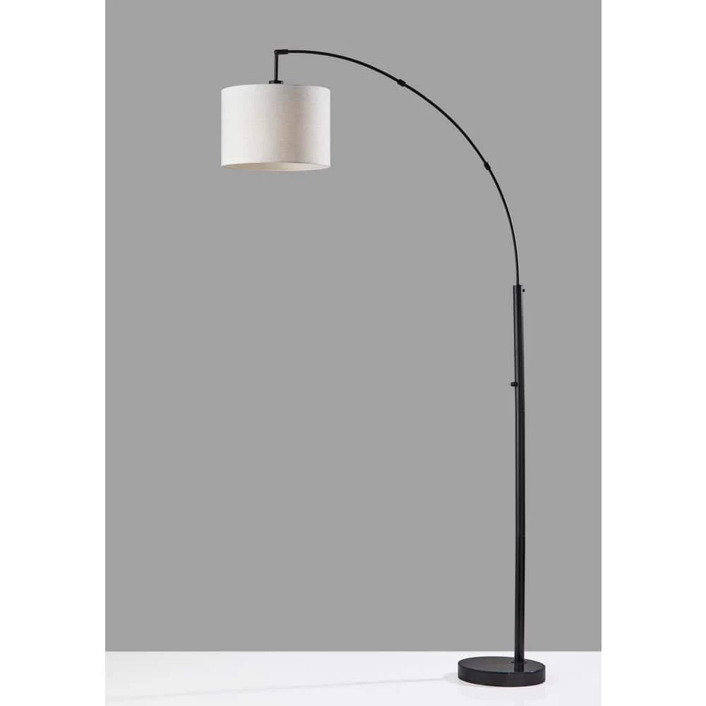 A smart and stylish way to light up a seating area, the Bowery Arc Lamp provides overhead lighting that can be controlled with an adjustable shade. Aside from functional assets, a matte black finish is paired with a black marble base to display striking style. An 100-Watt bulb shines beautifully through a taupe textured fabric shade. This unique mix of materials creates a beautiful, classy look adding modern farmhouse vibes to any home. An on/off rotary switch is placed conveniently on the pole.