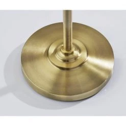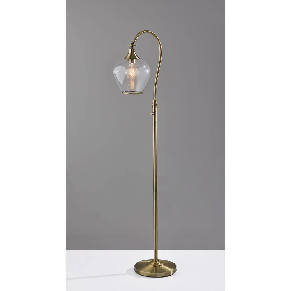 Add an eye-catching design piece to your bedroom or living space with the Bradford floor lamp. with warm light shining through a clear tulip-shaped glass shade, this lamp creates a look that is as aesthetic as it is functional. The 59 in. tall lamp features a 10.5 in. Dia round base and curved stand with an antique brass finish and a matching metal rim accenting the glass shade, making it the perfect solution to provide lighting and vintage decor to any space. Completing the vintage look is an included 40-Watt Edison bulb. for versatile lighting options, the base of the shade is adjustable, allowing you to pivot the shade up or down to direct the light wherever it’s needed. Operated by a rotary switch on the stand to easily turn it on or off, the Bradford floor lamp also features a 5 ft. clear cord. Complete your space’s look with the coordinating Bradford pendant lighting, wall lamp and desk lamp.