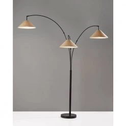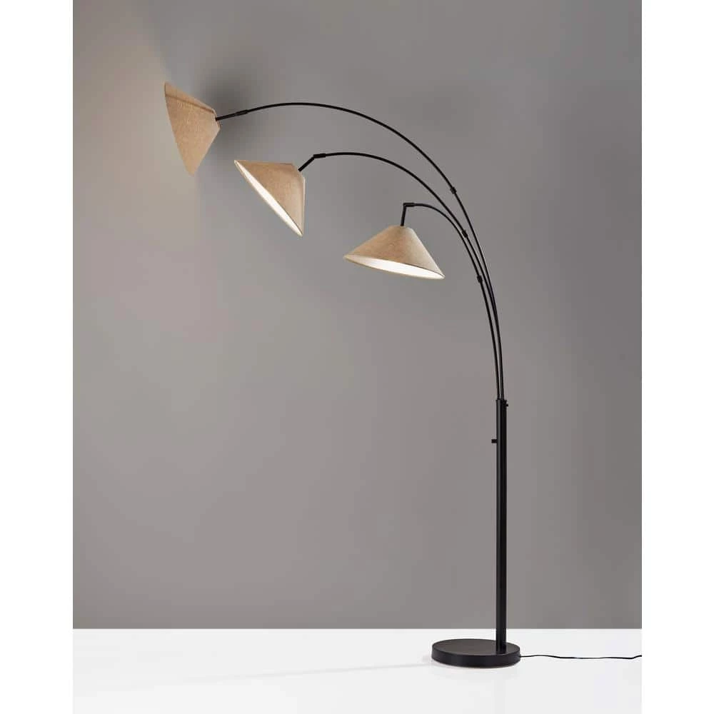 Add a modern touch to your space with the clean styling of the Braxton 3-Arm Arc floor lamp. The arcing design and slender profile of this 86 in. all lamp makes it the perfect light source for any space. The 12.5 in. Dia round brushed steel base provides stability, while the clean lines in dark bronze add a modern, minimalist touch. The dark bronze finish continues through the pole and arcing arms. for maximum versatility, the lamp features 3 arms, each topped with a 60-Watt bulb (not included) and textured light brown fabric shade that features a contemporary cone shape. The 3 arms can be swiveled and repositioned from the base and each head features an adjustable joint, allowing you to direct the light wherever it’s needed. Operated by a rotary switch located on the stem, this lamp features multiple lighting settings so you always have the desired amount of light. A simple twist of the switch turns 1-light bulb on, another twist turns 2 of the lightbulbs on, a third twist illuminates all 3 of the lights and a fourth twist turns all lights off. The Braxton 3-Arm Arc floor lamp is also available with a brushed steel finish and coordinating white textured fabric shade.