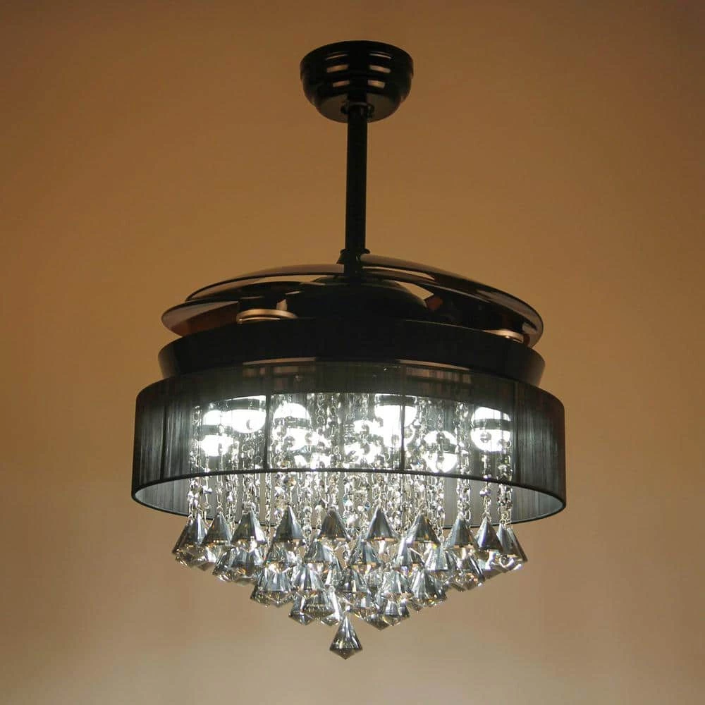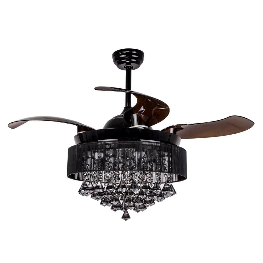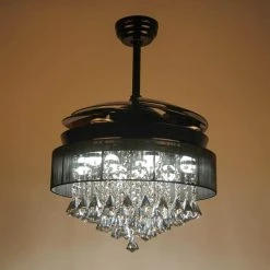 - 4-retractable acrylic crystal chandelier ceiling fan blades, diameter 46 in. when extended and 20-3/4 in. when closed, blades will stretch out and put inside automatically when turned on and off