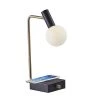 Add a mid-century accent to your bedroom, living room or office space with the Cap Table Lamp. A black metal dome shade has a gold painted inside for optimal light reflection. 2-sockets each hold a standard 40-Watt bulb, each controlled by its own pull chain switch providing 2 brightness settings. Black and antique brass finishes are mixed to create a versatile, modern look.