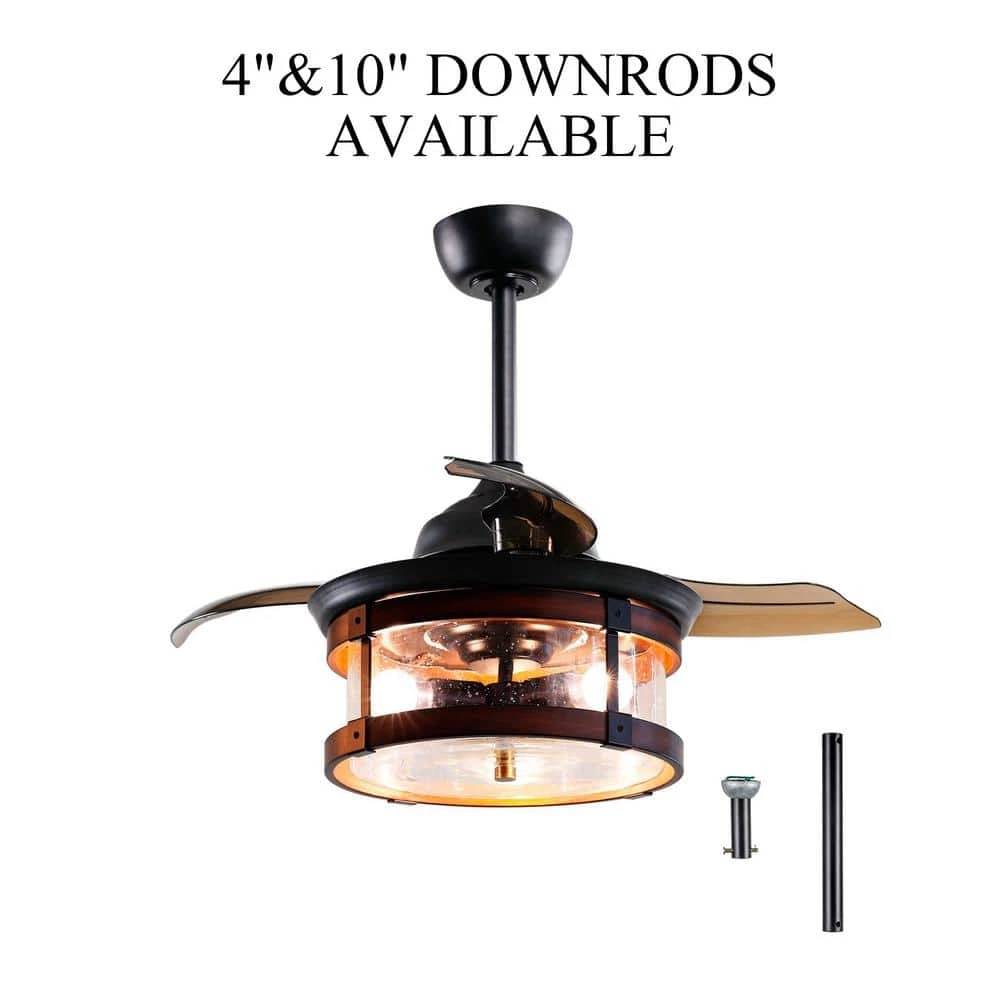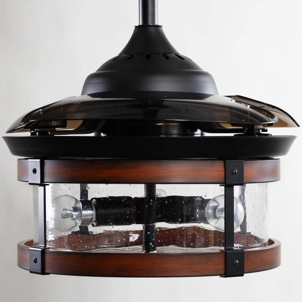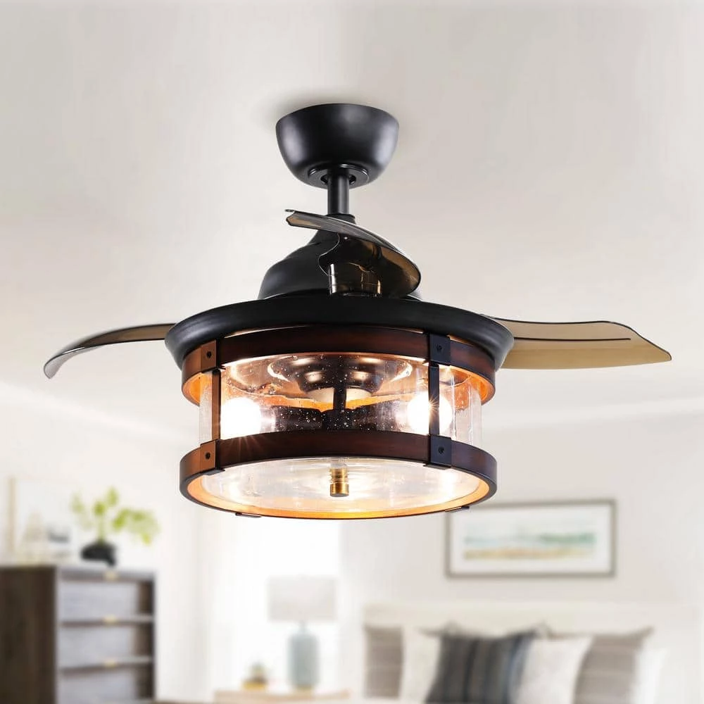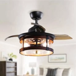 This 36 in. Industrial 3 Blade Ceiling Fan with Remote is multi-functional in that it can diffuse light to the room and cool the air as well. Industrial body, glass shade bring peaceful light. Independent Light. Retractable blades. With the remote control, you can adjust the light and the fan with great ease.