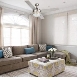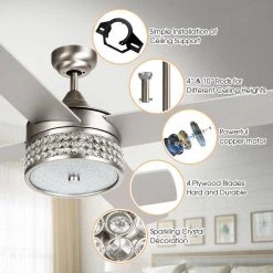 Crystalline beauty and functionality. Illuminate your room in style with this crystal chandelier ceiling fan. 4-Satin Nickel blades allow for maximum air movement. Function meets fashion in this radiant and chic 52 in. chandelier ceiling fan. Crafted from metal with dazzling crystal accents, this nickel ceiling fan adds the perfect touch of glamour to your home while also keeping air circulating with multi-speed functions.
