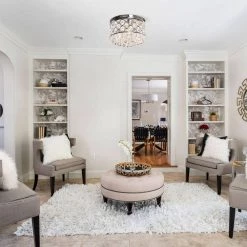 This attractive ceiling lamp will complete your elegant dining room or entryway. Brilliant radiance sparkles through carefully paired groupings of diamond and kite cut crystals framed in a lovely chrome shade. This ceiling light fixture could light up your room extremely and widely to create a superior and classy atmosphere in your living room, dining room, bedroom, foyer or any other dry place.