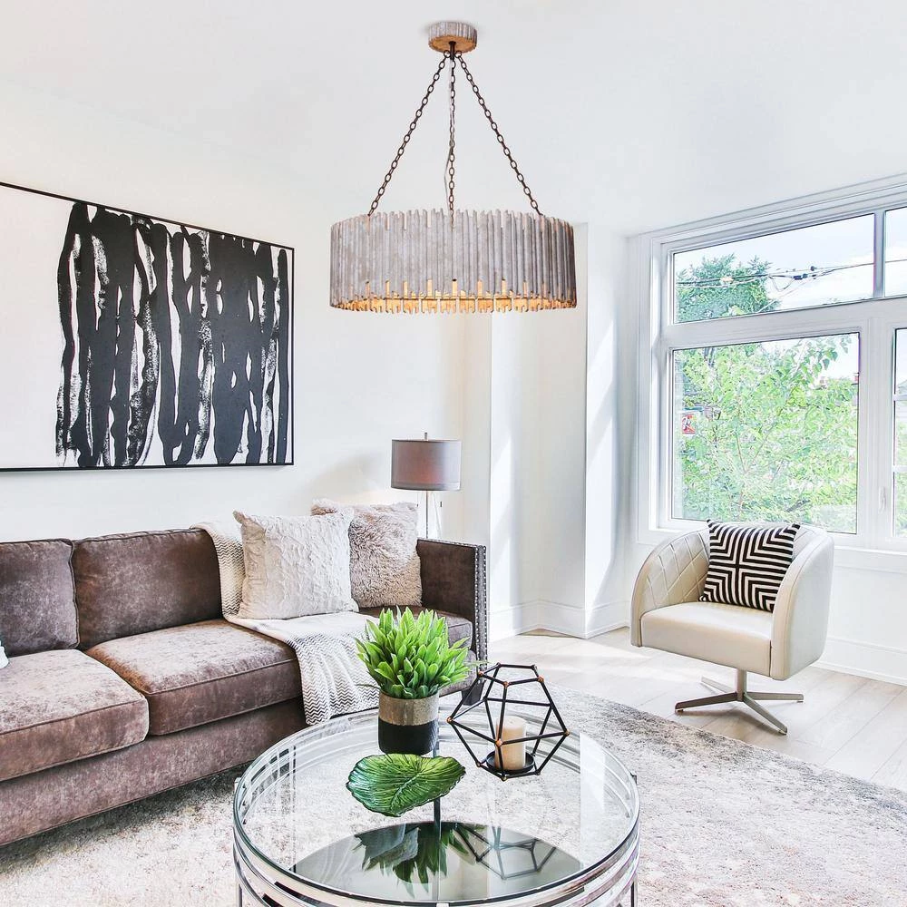 This transitional pendant light mixes elements of wood and metal to create a rustic look in living rooms, dining rooms and other areas of your home. Experience handsome warmth in your space with this confident fixture. Inside the wooden openwork frame is 3 rustic candle-shape lights that full of elegant esthetics. This wooden chandelier will be the focal point in any space like dining room, living room, bedroom, entryway, foyer, stairway, etc. Keep your space bright, welcoming and ready for guests.