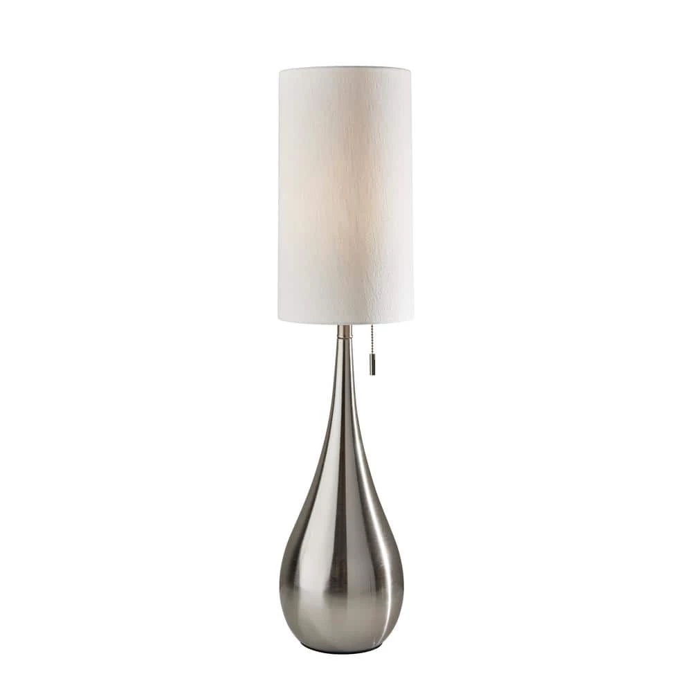 Featuring a sleek, teardrop shaped silhouette, the Christina Table Lamp exudes elegance and contemporary style with its slim profile and minimalist focus. A tall, thin drum shade is made with a textured white fabric, softening the look. This stately table lamp stands 34.5 in. high making a strong presence in a room. Turn the lamp on and off with a simple pull chain switch. Bulb is not included.