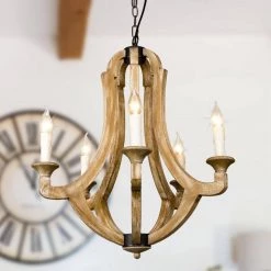 There are many companies that offer lighting and fans, but only 1 craftmade. No one else brings our experience, knowledge, training, design and dedication. It’s what’s built our reputation and sets us apart. This 5-light vintage farmhouse wood chandelier is handcraft, real wood and metal frame, 5 candle holder lights, cottage and antique farmhouse style. It will be an attention getter, creates a mesmerizing display and unique details.