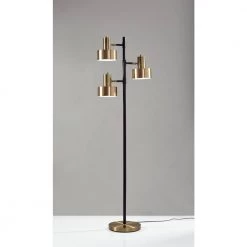 The perfect mix of retro and mid-century modern styling, the Clayton Tree Lamp provides direct light wherever you need it with three jumbo adjustable shades. A matte black finish is accented with antique brass metal and a black and white fabric covered cord. Round base with antique brass finish.