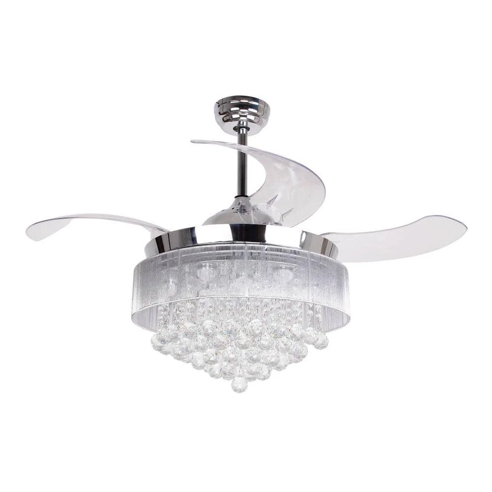 You will be pleasantly surprised this fabulous, elegant and chic Parrot Uncle crystal chandelier ceiling fan to your home. The chrome LED chandelier light with decorative crystals provides bright illumination, making this fancy ceiling fan both functional and stylish. Features the retractable blades, this charming ceiling fan is full of enchanting crystal accents that sparkle when illuminated.