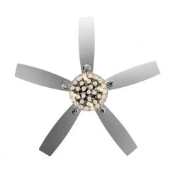 These Crystal ceiling fans with lights are the most cost-efficient option to bringing the temperature down and moving stale air out of your room. This lighted chandelier ceiling fan is the perfect solution for your cooling and lighting needs. A full crystal shade combines to fill your home with a grandeur rarely found in such a functional package. The matching silver stained wooden blades move an impressive amount of air. The 3-speed motor ensures you find the exact setting for your comfort.