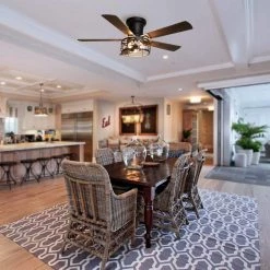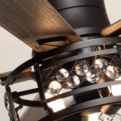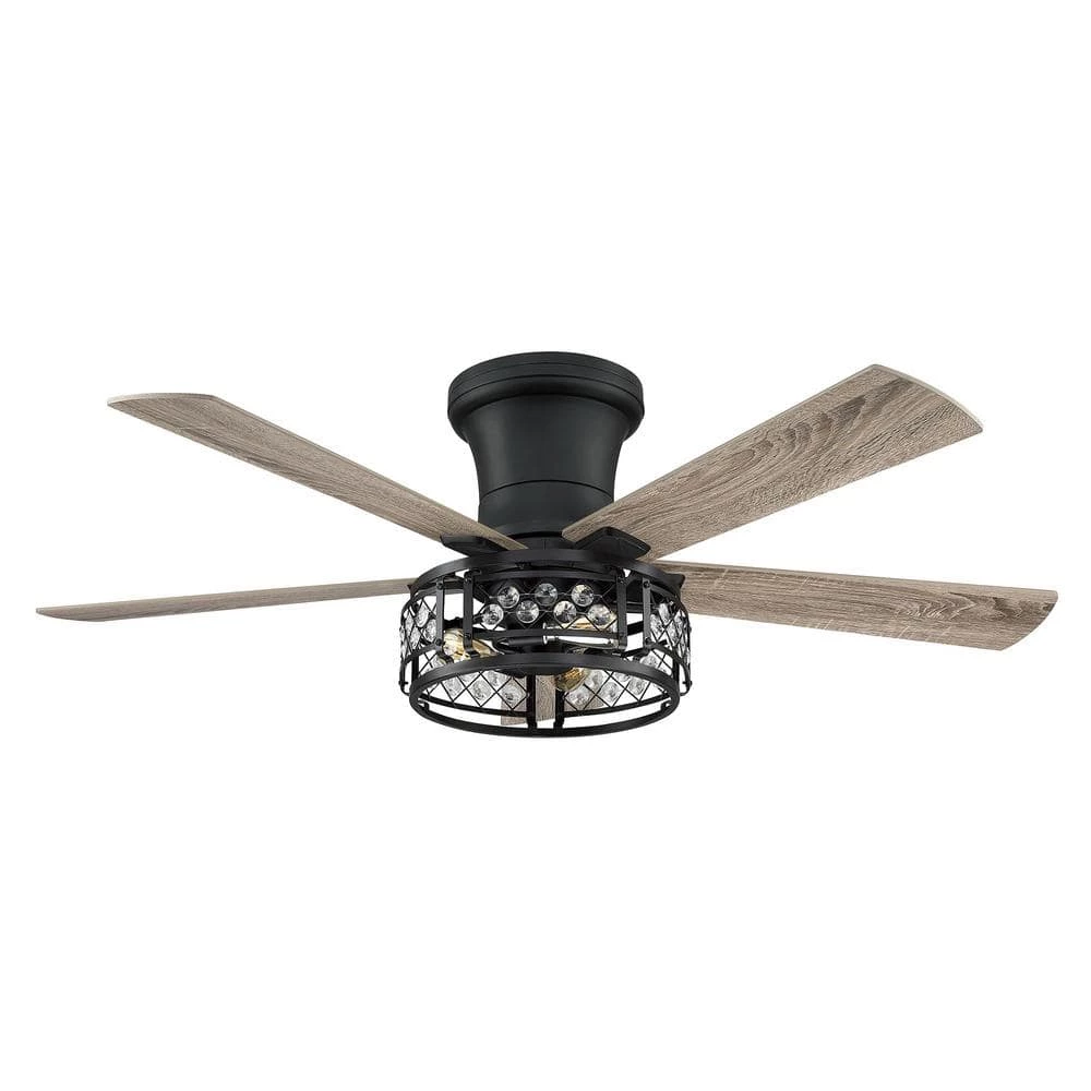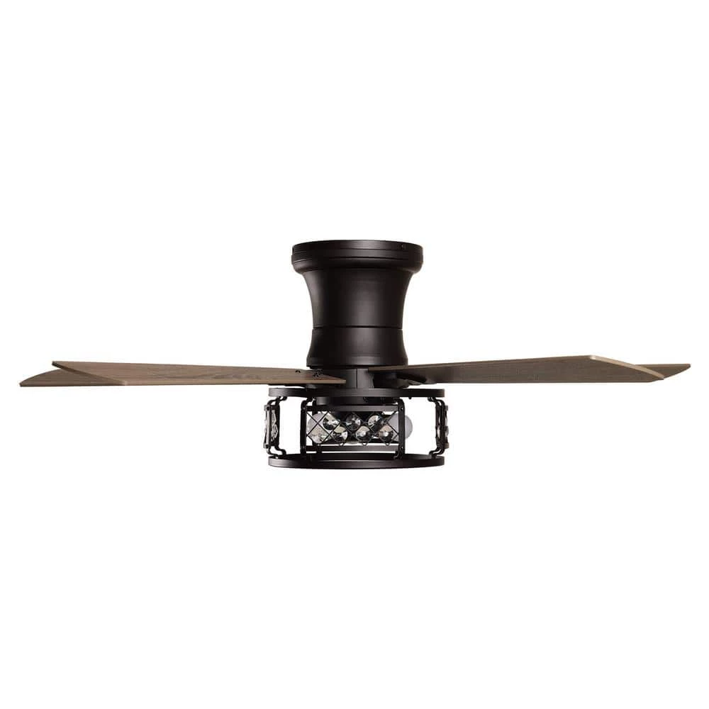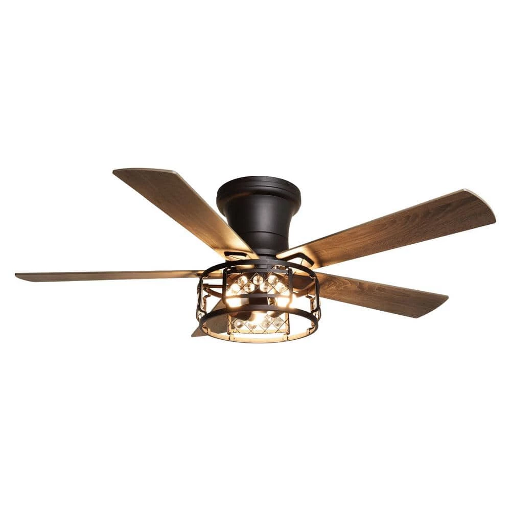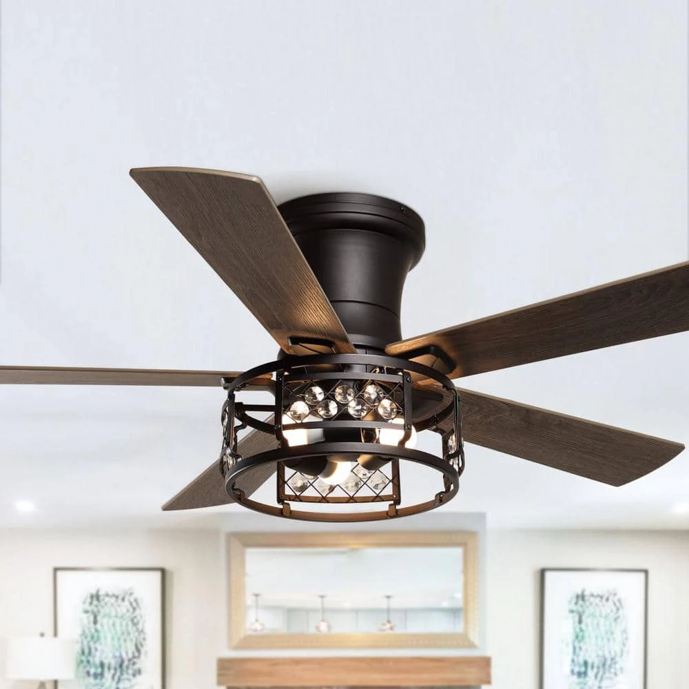 Give your living space a flair of grandeur with this hugger ceiling fan chandelier. The oil rubbed bronze metal shade combines the crystal to fill your home with a upscale elegance rarely found in such a functional package. Features a 3-speed motor and 5 reversible blades, remote control for easy control of your lighting and cooling needs.