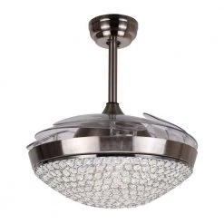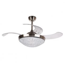 - 4 retractable acrylic crystal chandelier ceiling fan blades, diameter 46 in. when extended and 20 3/4 when closed, blades will stretch out and put inside automatically when turned on and off