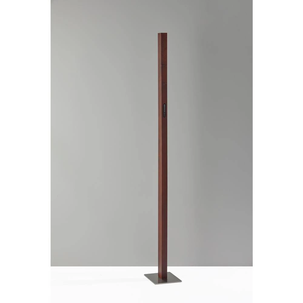The Elliott LED floor lamp is the perfect addition to contemporary, minimalist decor. Its rectangular lines and stripped-down architecture combined with smart touch technology create a lighting solution that is both stylish and versatile. The 60.5 in. tall lamp features a rectangular wooden body with a walnut finish and an integrated 32-Watt LED light. The light produces 2,560 Lumens that are softly distilled by the 57.5 in. tall frosted diffuser. Operated by a discrete smart touch switch located on the rectangular body, the lamp has 6 brightness settings and 6-color temperature settings to choose from so that the lighting can be fine-tuned to suit your space and your mood. The tall wooden body rests upon a low-profile, 7 in. x 8.75 in. rectangular brushed steel base.