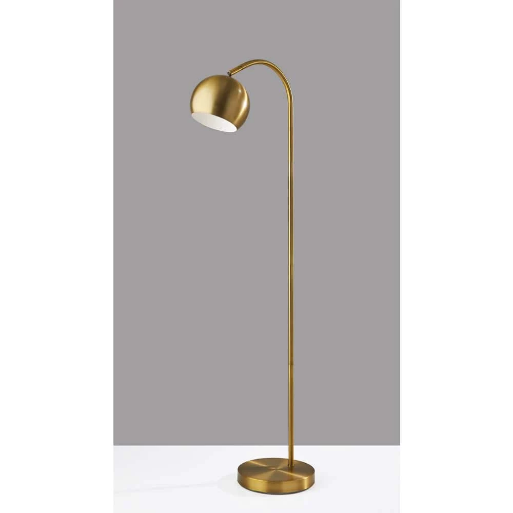 Drawing inspiration from mid-century modern designs, this sleek, arched floor lamp features an 8 in. globe shaped shade and slender metal body for a minimalist touch. An antique brass finish brings warmth to any space. Place this lamp next to your work space or reading area for a pop of glamour and style while an adjustable shade offers optimal functionality as well.