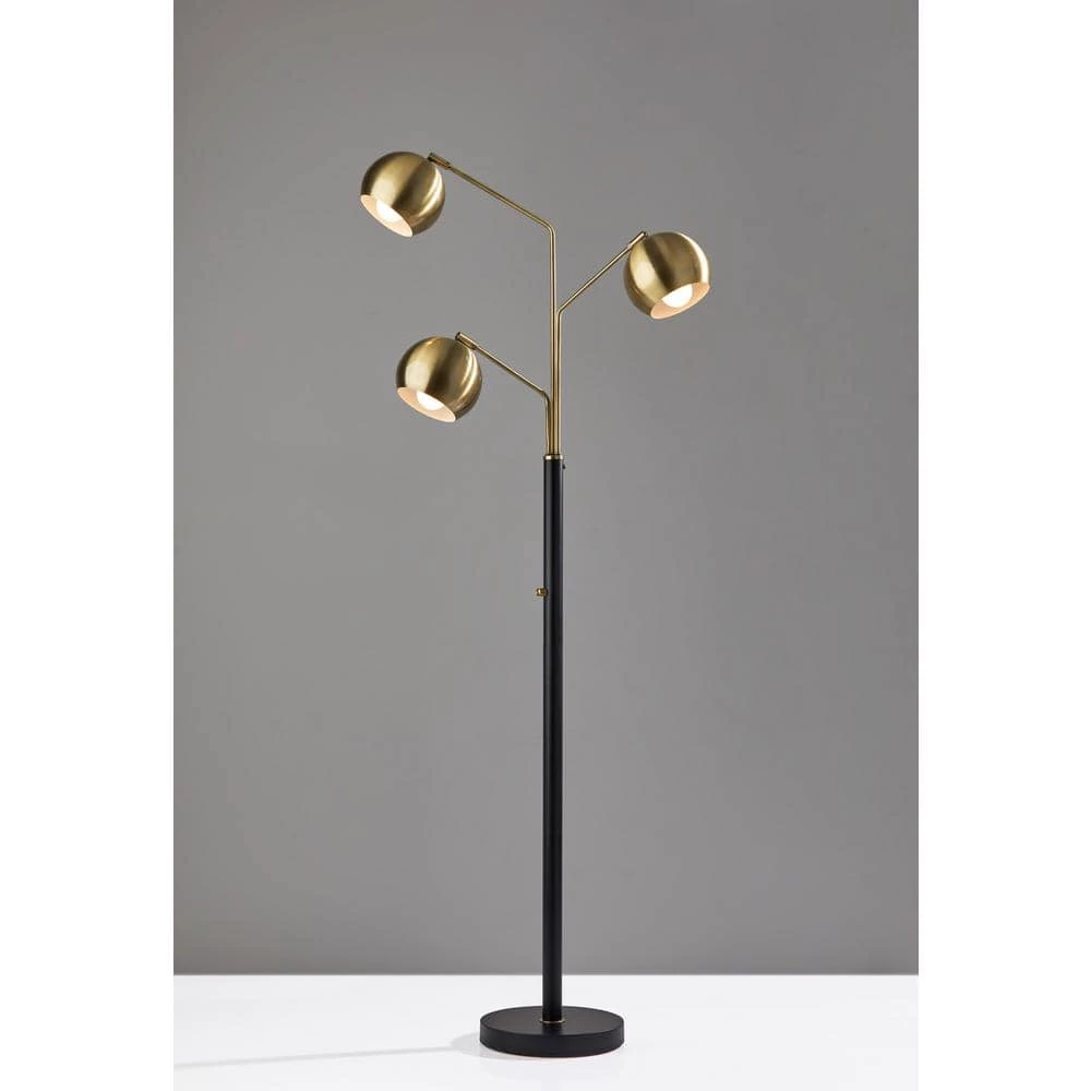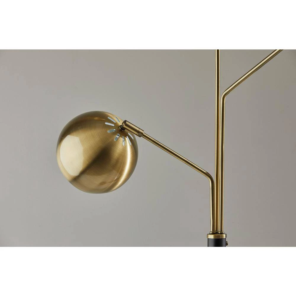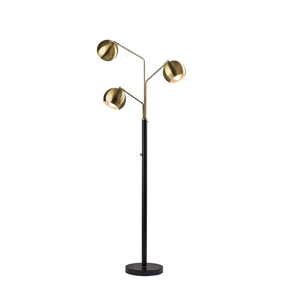 Drawing inspiration from mid-century modern designs, this sleek, 3 armed floor lamp features an 6.5 in. globe shaped shades and slender metal body for a minimalist touch. Antique brass arms and shades add warmth and contrast to the black metal pole and base. Place this lamp next to your work space or reading area for a pop of glamour and style. Adjust the arms as well as the shades to direct the light exactly where it is needed. A rotary switch located on the pole controls the light at 4 settings: 1-light on, 2-lights on, 3-lights on, off. This allows for multiple brightness settings to satisfy all lighting needs.