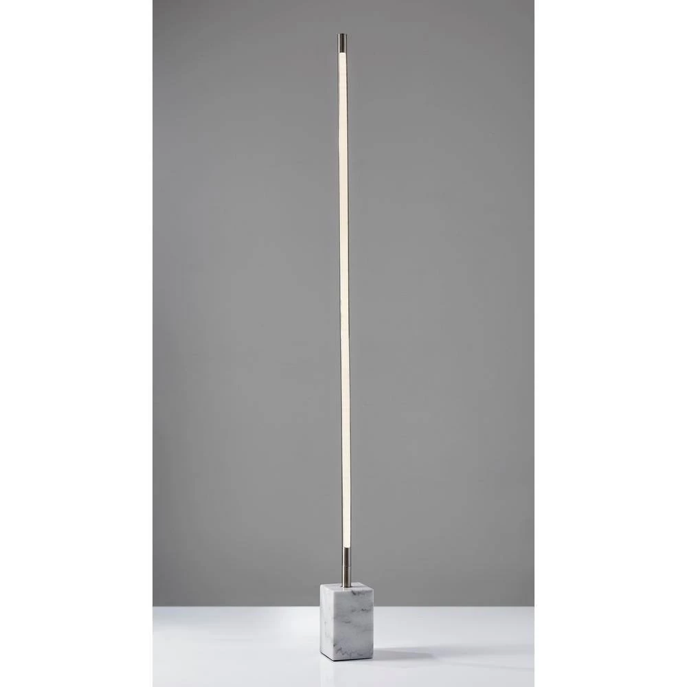 Slim and sleek, the Felix LED Wall Washer is a must-have for the contemporary, minimalist home. A long, 1 tube emits 2,500-Lumens of fully dimmable light that reflects off of the wall, filling the room with a warm, ambient glow. A chunky, rectangle shaped white marble base adds a touch of elegance to this modern style. This design is available in both a brushed steel and antique brass finish. A touch dimmer switch is conveniently located at the top of the shade.